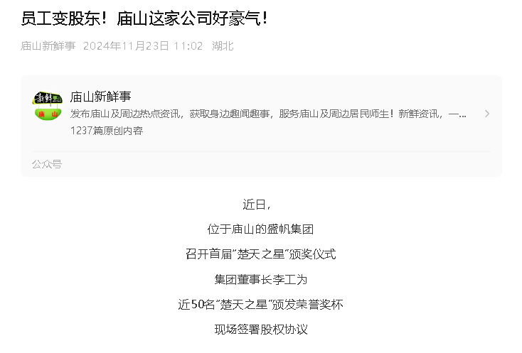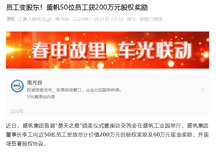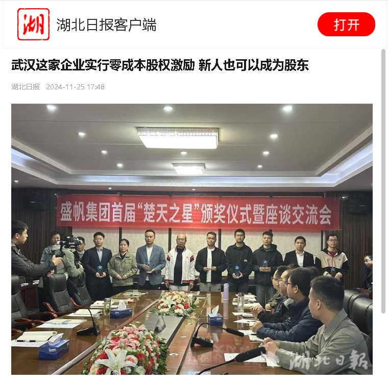 湖北日报讯(记者龚雪、通讯员徐俊)“没想到刚入职公司一年三个月,就得到了2000股股份和6000元现金奖励。”11月21日,···